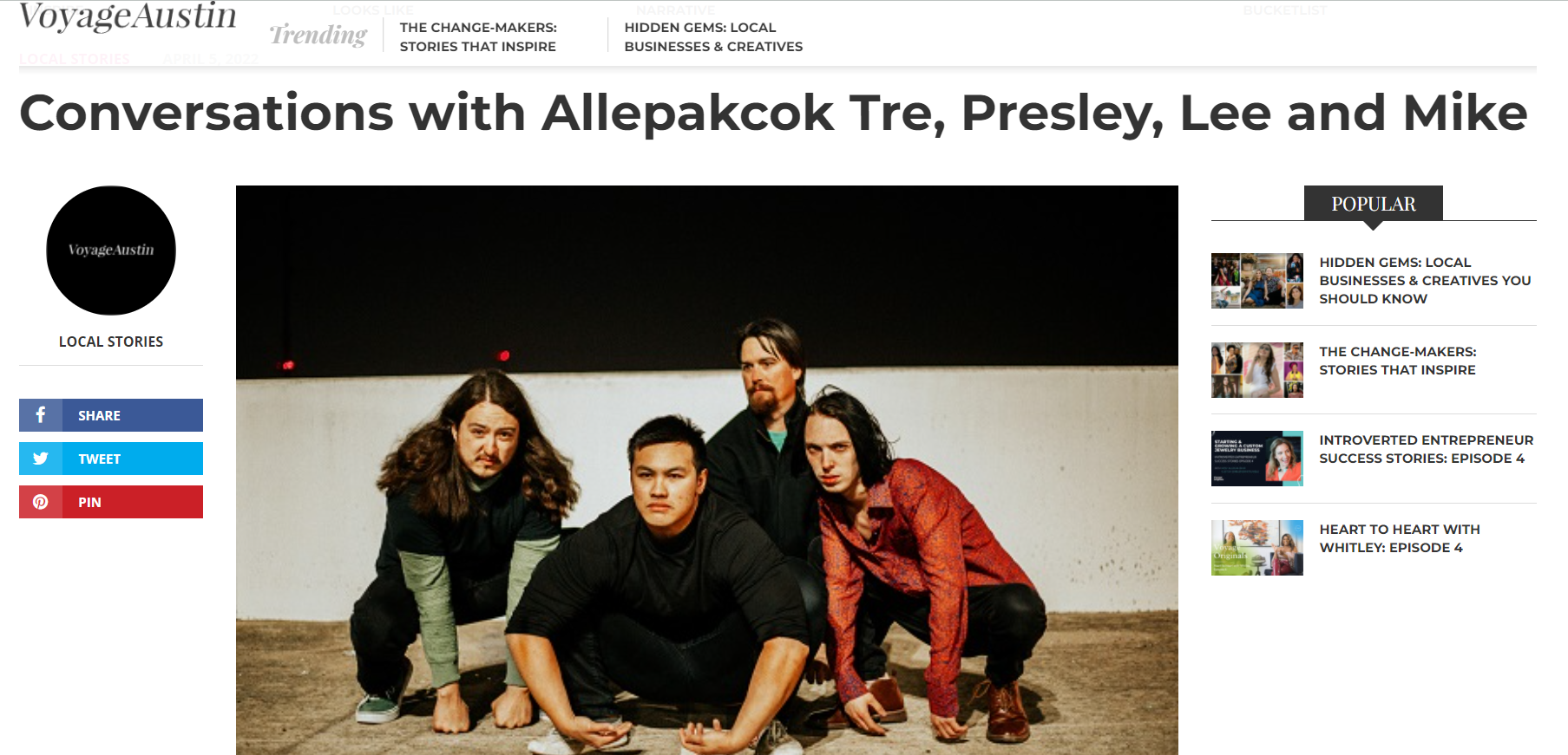 Allepakcok . 4/5/22 Allepakcok . 4/5/22 Interview with Voyage Austin! Read More Allepakcok . 3/14/22 Allepakcok . 3/14/22 UNOFFICIAL SXSW 2022 SCHEDULE Read More